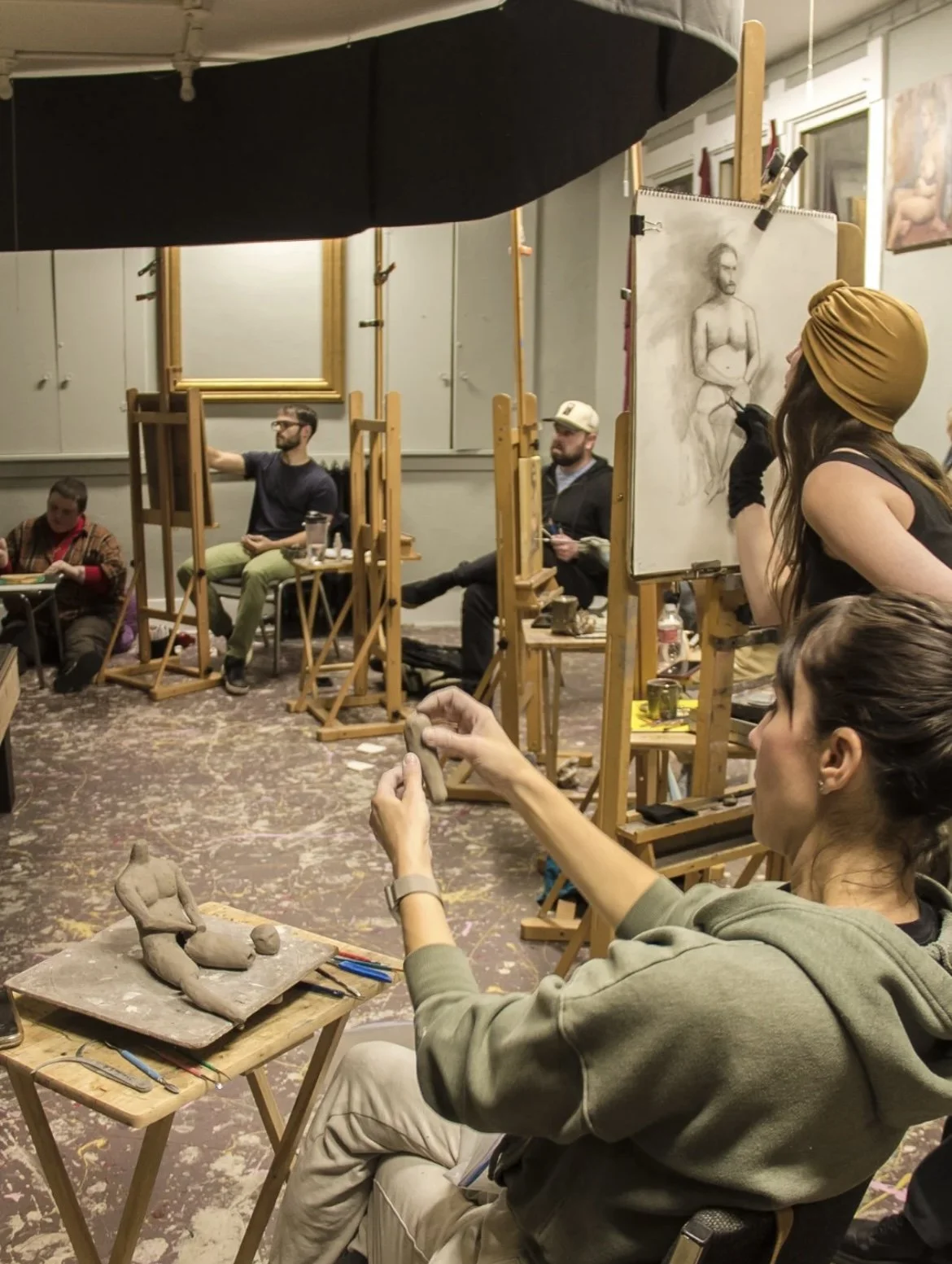 Paint and draw from the live model in a professional artist’s studio!